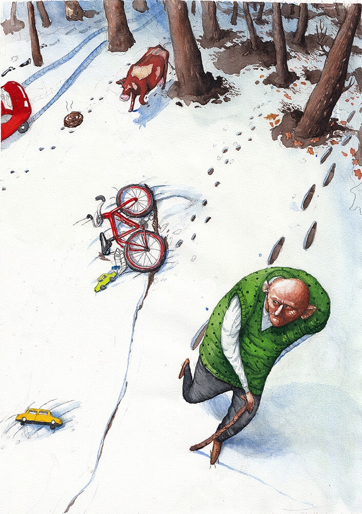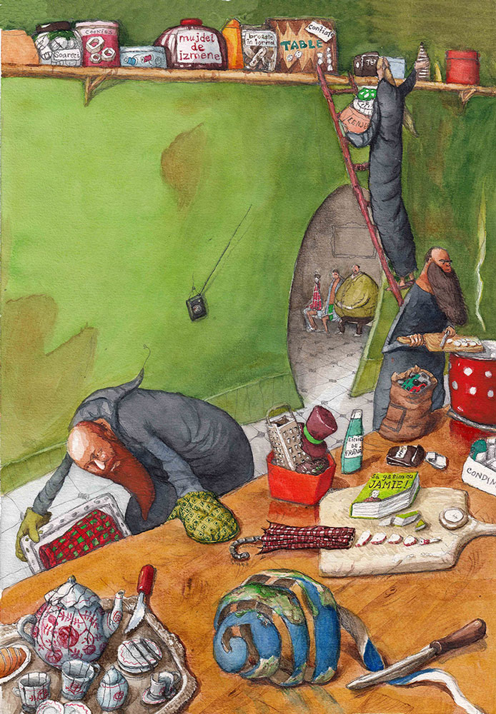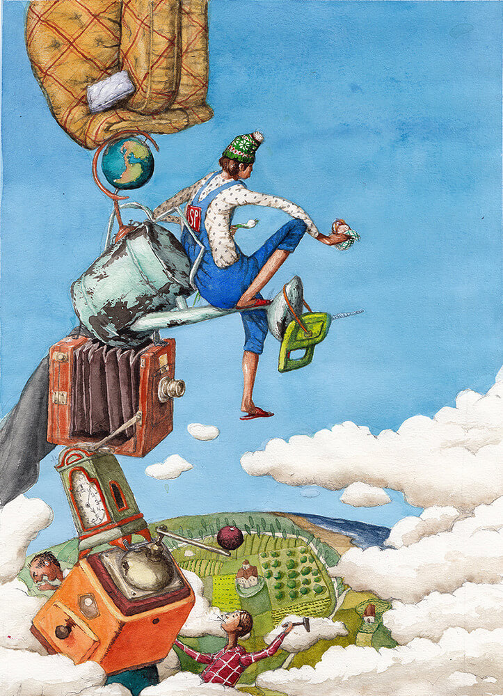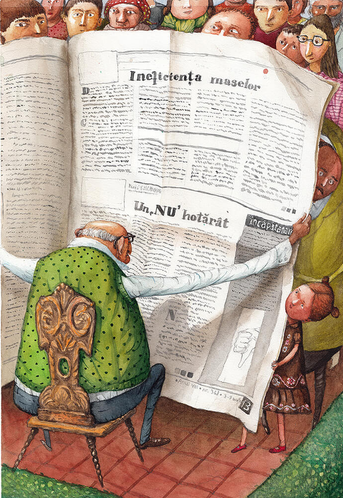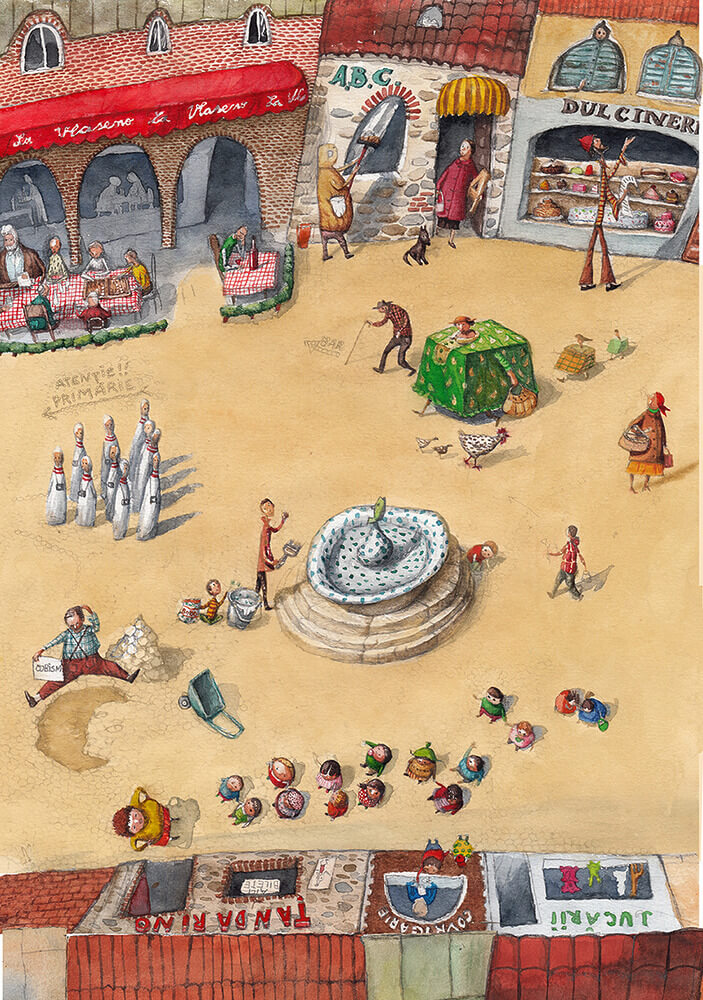 Illustrating Povestea Satului Nimica Toată written by Andrés Barba, was an enjoyable journey into a village where the extraordinary hides behind everyday life. The characters, with their amusing quirks and the imaginative quest to bring back the stars, inspired me to reflect their unique charm in the illustrations. I wanted to visually echo the story’s deeper message about unity and the strength that comes from working together, even in the most unexpected situations.