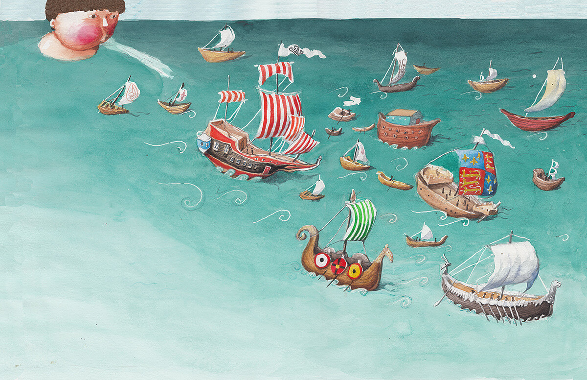 The Greatest Gulliver/ Cel mai mare Gulliver Illustrating Cel mai mare Gulliver by Gellu Naum allowed me to delve into a playful narrative filled with childhood dreams and friendships, capturing the essence of a boy’s whimsical journey through vibrant and imaginative visuals. Client: Editura Arthur Year: 2013 Availability: Make an Inquiry Category: Available for print Commissioned Tags: watercolor